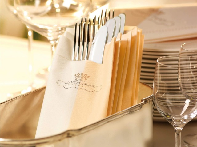 Cutlery sleeves provide an innovative, time-saving and hygienic way of presenting diners with a napkin and cutlery.