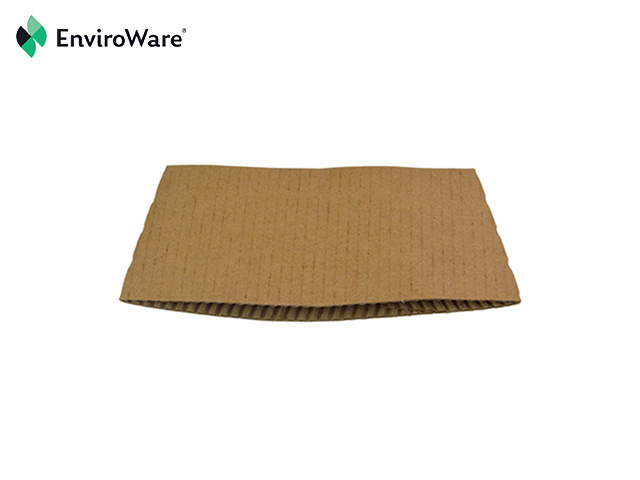 Made from kraft brown cardboard, these disposable coffee cup sleeves are smooth on the outside and corrugated on the inside.