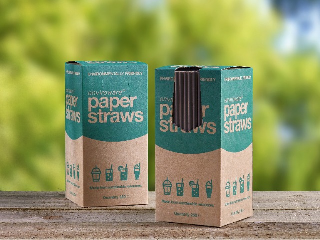 EnviroWare paper drinking straws are packed in handy, printed cardboard dispenser boxes of 250 straws. Each outer case (SKU) contains 12 straw dispenser packs. i.e. total of 3,000 straws per case.