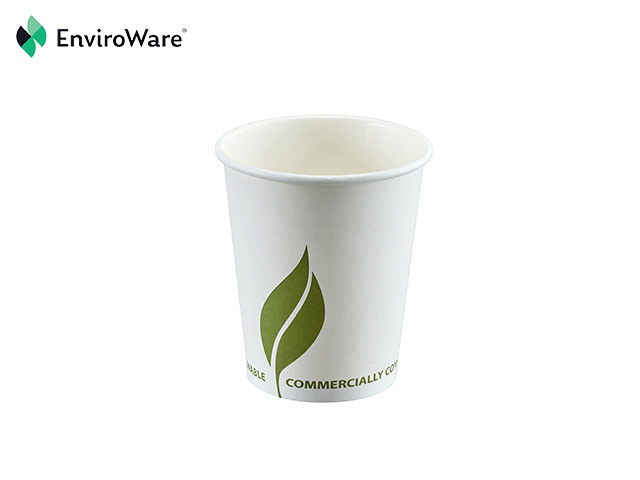 8oz White Leaf 2 Single Wall Cups. These 8oz capacity paper hot drink cups are perfect for small servings of takeaway drinks such as tea, coffee or hot chocolate. Compatible with EnviroWare® hot cup lids – choose from 8oz White CPLA Domed Sip Through Lids or 8oz White Bagasse Domed Sip Through Lids.