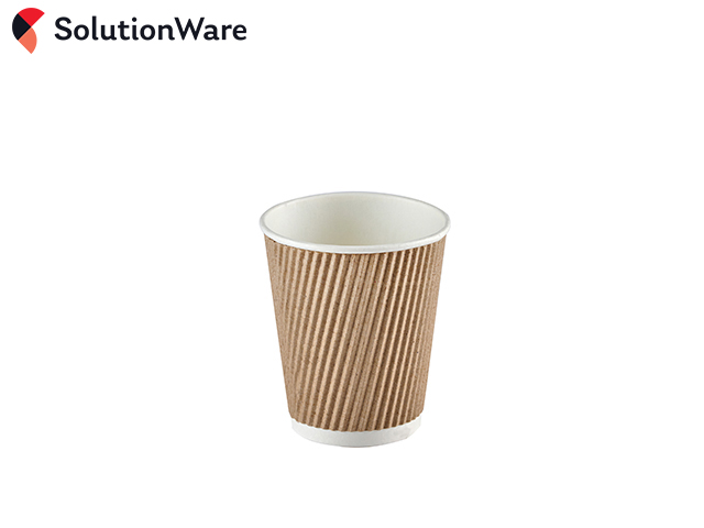 8oz Kraft Ripple Wall Paper Hot Cups. Quality small paper cups for takeaway hot drinks, such as tea and coffee. Ripple wrap outer layer provides hand comfort, and provides insulation to keep drinks hot.