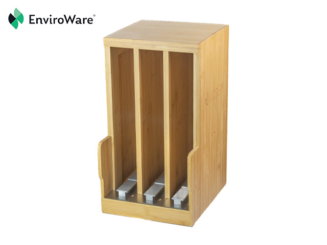Bamboo Dispenser for Wooden Cutlery – supplied empty without plastic cartridges or wooden cutlery (cartridges and cutlery refills sold separately).
