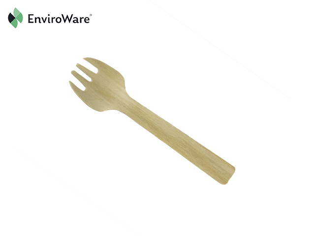 105mm Wooden Waxed Spork – Small. EnviroWare® Waxed wooden sporks. Our small wooden sporks are 105mm in length. Made from 100% natural,FSC certified birch wood. These disposable sporks have been coated in wax, making them extra smooth in the mouth, whilst preventing the taste sometimes associated with wooden cutlery.