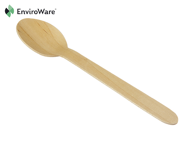 160mm Wooden Spoons – Standard. EnviroWare® Disposable Wooden Spoons are made from sustainable, FSC certified Birch wood. Made from 100% natural wood without any coating. Strong and smooth, therefore an ideal replacement for disposable plastic spoons.