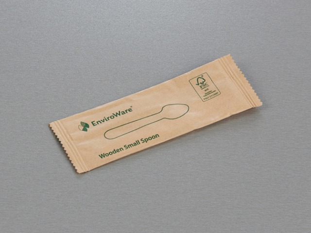 110mm Wrapped Wooden Spoons – Small. EnviroWare® wooden teaspoons are 110mm in length, supplied individually wrapped in paper packets.