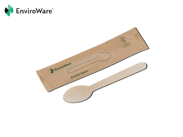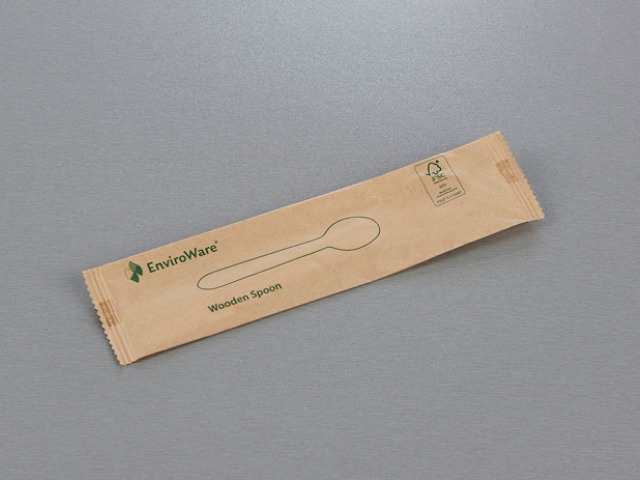 160mm Wrapped Wooden Spoons – Standard. EnviroWare® Wrapped Wooden Spoon Standard 160mm, single use wooden spoons supplied individually wrapped in paper packets. Made from 100% natural, FSC certified (Forest Stewardship Council) birch wood; a sustainable replacement for disposable plastic spoons.