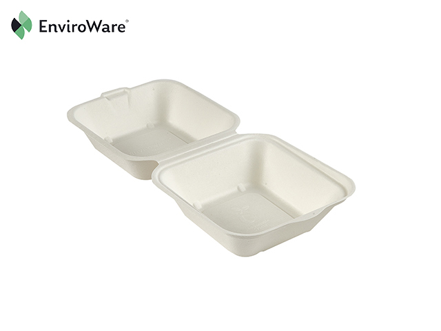 5″ White Bagasse Square Burger Boxes. EnviroWare® small bagasse burger boxes.