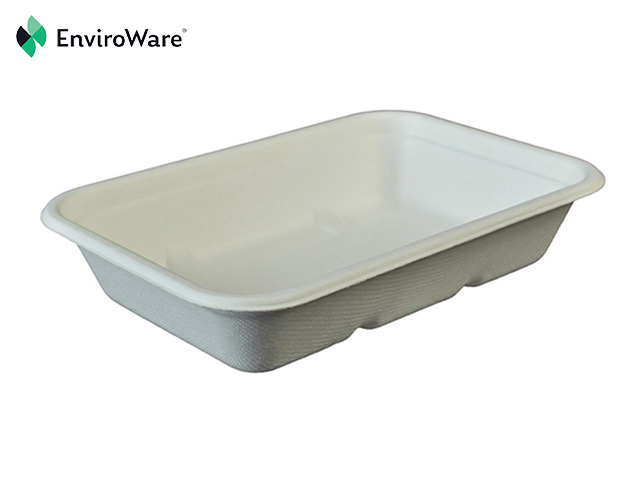 450ml White Bagasse Rectangular Leakproof Trays (16oz). EnviroWare® Bagasse food trays with lids available separately. An alternative to foil takeaway food containers. The 750ml tray is 180mm long x 125mm wide x 37mm high.