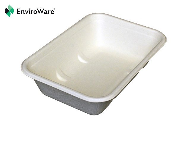 550ml White Bagasse Rectangular Leakproof Trays (19oz). EnviroWare® Bagasse food trays with lids available separately. An alternative to foil takeaway food containers. The 550ml tray is 180mm long x 125mm wide x 44mm high.