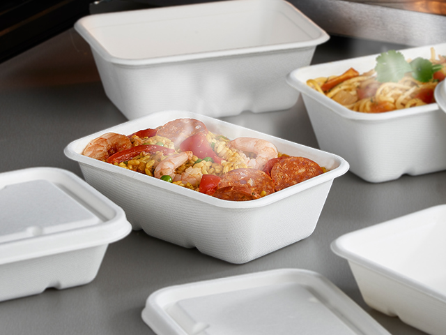 650ml Leakproof Bagasse Trays and matching lids are designed to be stackable and they are suitable for microwave reheating foods.
