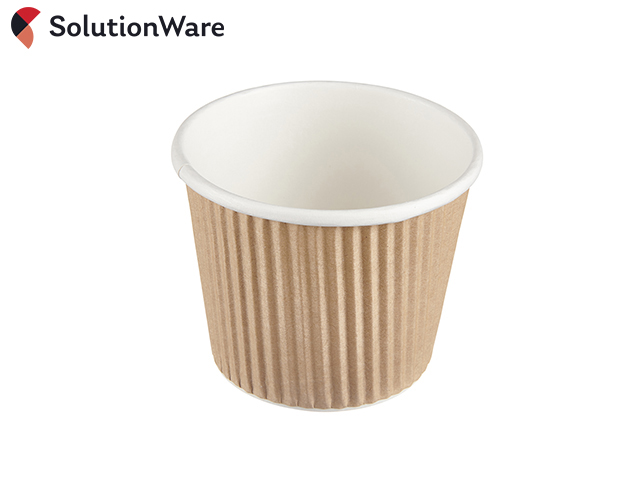 Paper soup containers with a corrugated / ripple outer for heat insulation and hand protection.