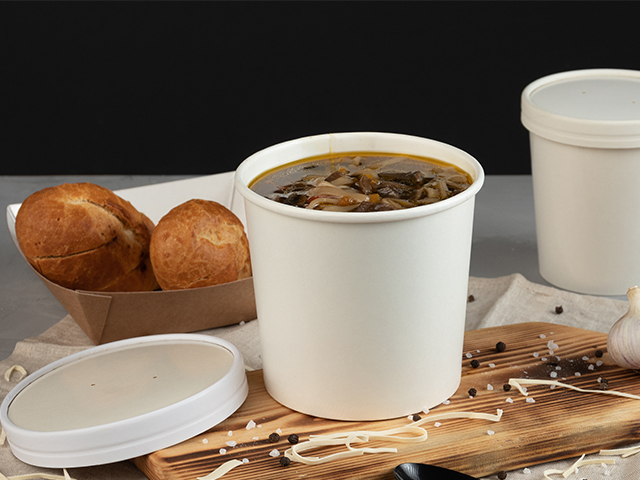 739 ml Plain white, round food containers have an inner and outer PE plastic lining. This means they can be used not only for hot foods such as soup, but are also perfect for frozen foods such as ice cream.