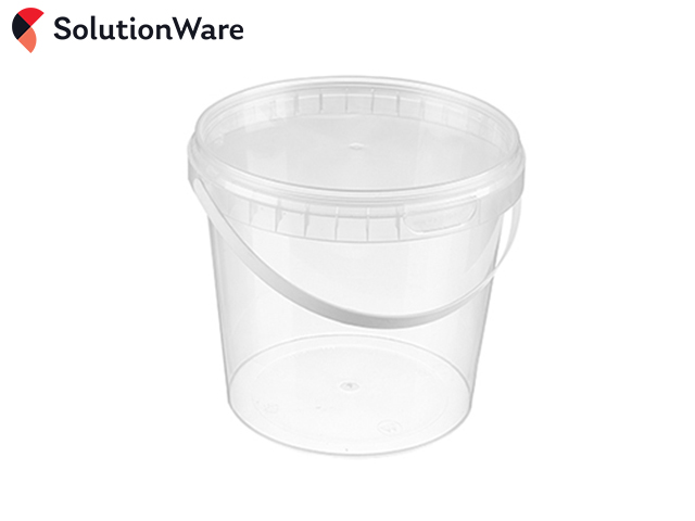 1000ml Round Tamper Evident Containers & Lids with handles. Large tamper proof food containers with the dimensions: 132mm diameter x 127mm deep. Complete with a white plastic carry handle.