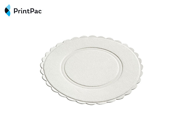 Our stock design small tissue coasters are plain white with a scalloped edge and debossed circle. These small tissue paper coasters are 80 mm / 8cm diameter, with a fancy scalloped edge. Disposable coasters are intended for single-use. Fresh and hygienic, they are ideal for use in hotels, bed & breakfasts, restaurants and cafes.