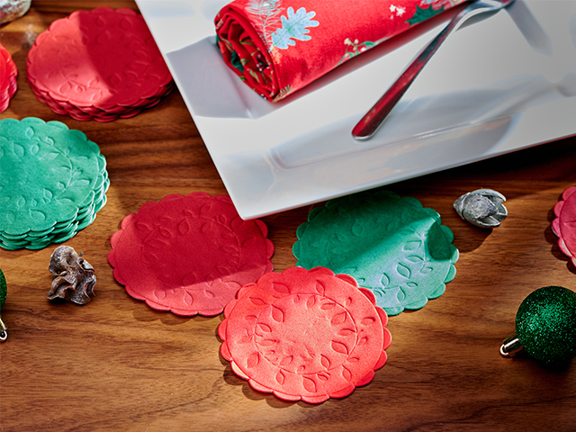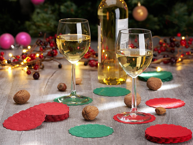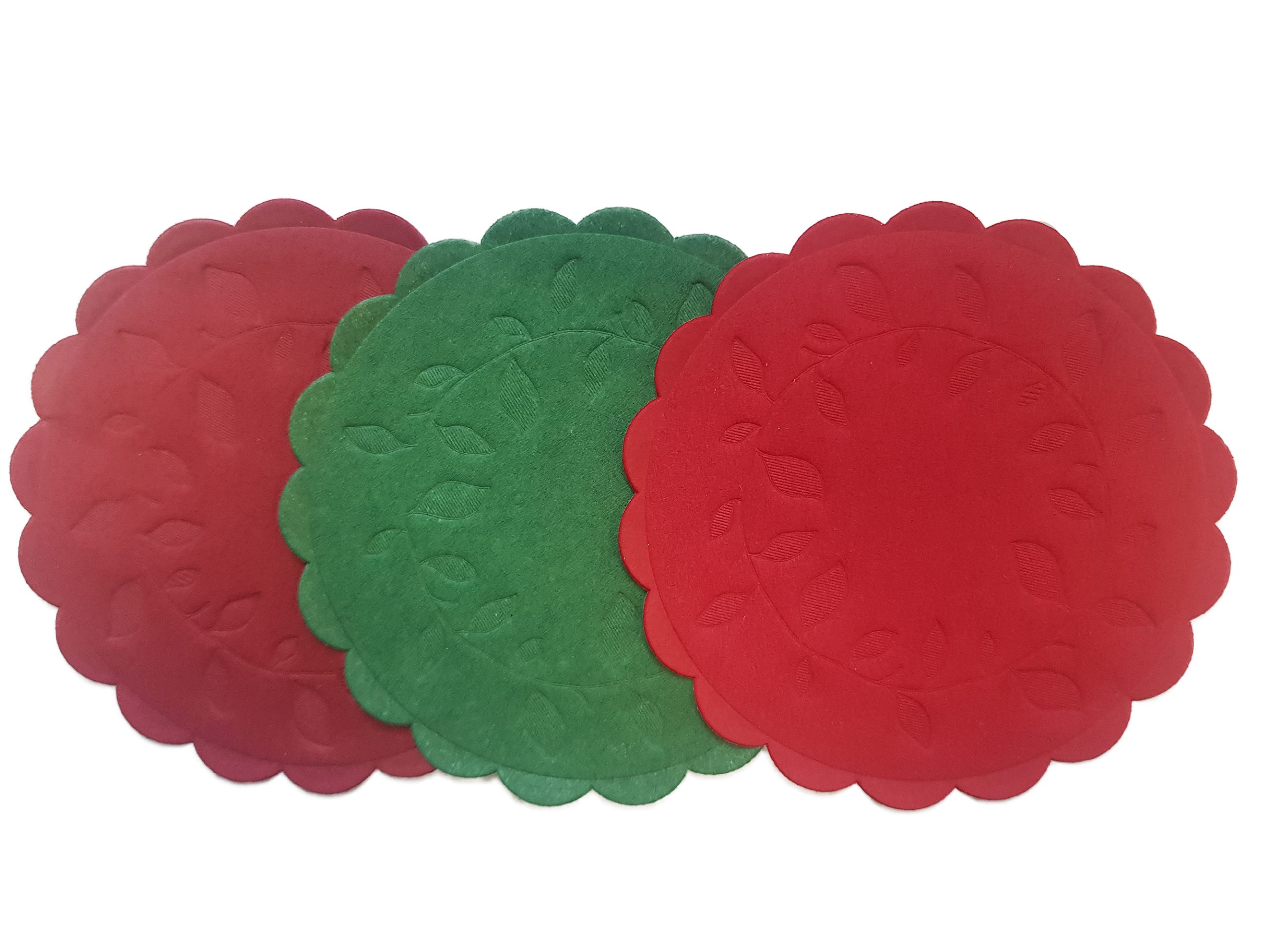 Christmas Tissue Coasters are available in cases containing red, bordeaux and green coloured tissue coasters.
