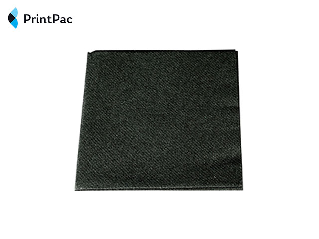 25cm black airlaid paper cocktail napkins. Our 1-ply airlaid paper offers a luxurious linen-like feel, making these napkins perfect for upscale events and occasions where a premium disposable napkin is desired. These plain black napkins are made in the UK at our factory in Burton-on-Trent, Staffordshire, and supplied in cases of 1,000.
