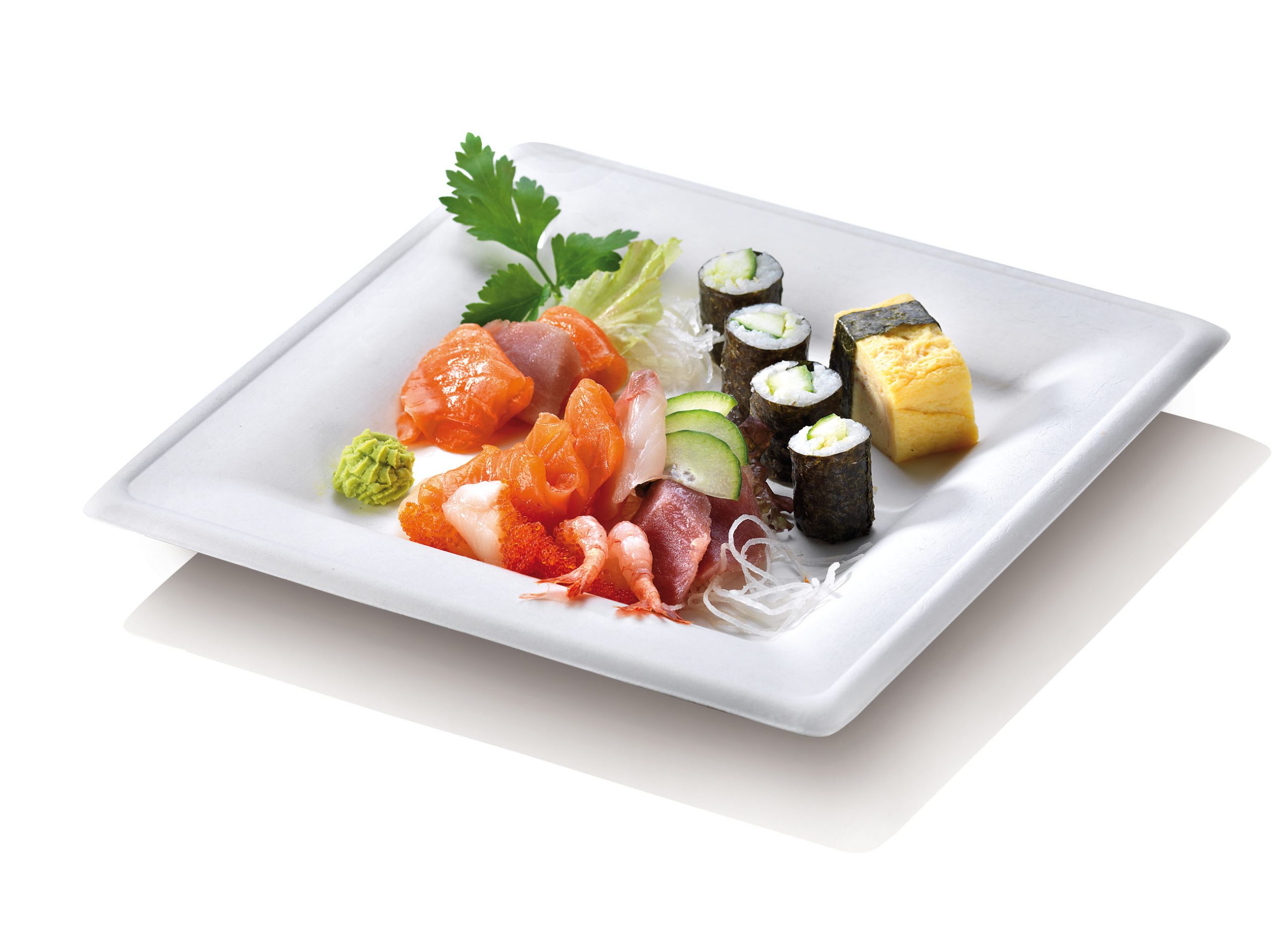 10″ White Bagasse Square Plates (260mm). EnviroWare® large round disposable plates can be used for hot or cold foods.