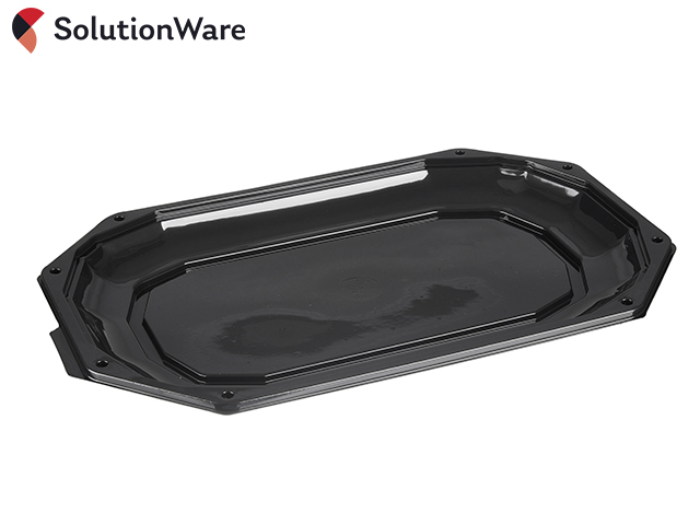 Large black snap on platter, made from strong black plastic with a minimum of 30% post consumer rPET recycled plastic. Clear lids are sold separately (code DSPLL). The lids fix to the base with studs, which help to keep food platters extra secure during transportation.
