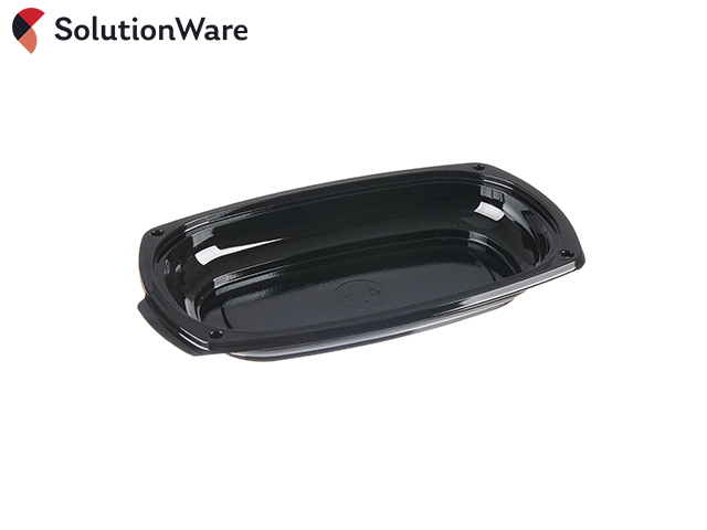Very small snap-on platter,made from strong black plastic with a minimum of 30% post consumer rPET recycled plastic. Clear lids are sold separately (code DSPVSL). The lids fix to the base with studs, which help to keep food platters extra secure during transportation.