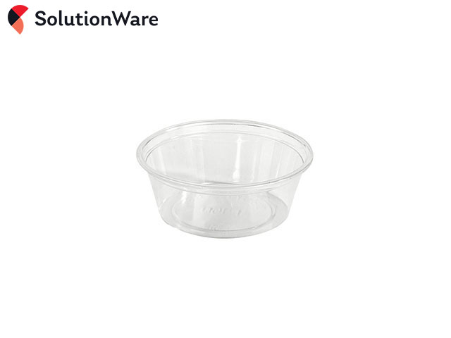1.5oz Clear Portion Pots (44ml), made from PET plastic. A secure fitting, matching lid is available separately, code XPETL2.