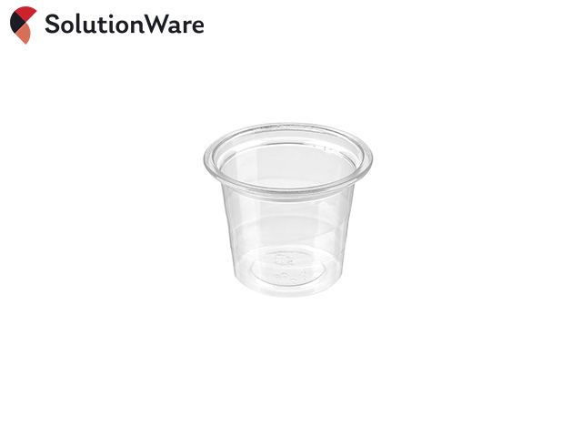 1oz Clear PET Portion Pot (28ml). Made from crystal clear PET plastic for optimal clarity. These small plastic portion pots are perfect for servings of sauces, dressings or dry herbs. They can also be used as sample cups.