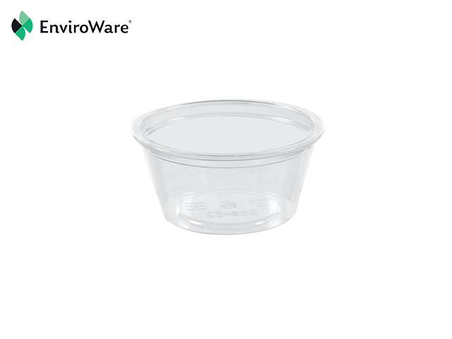 2oz Clear PLA Portion Pots (56ml). Small clear pots are ideal for serving sauces, dips and dressings with takeaway foods. Matching secure fit clear lids available separately, code P200LID .