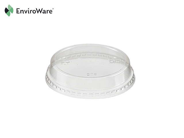 Clear PLA Raised Lid without a straw slot for EnviroWare 4.9, 5 & 7oz small PLA Cold Drink Cups. The flat lid is blank, without a hole or straw slot.