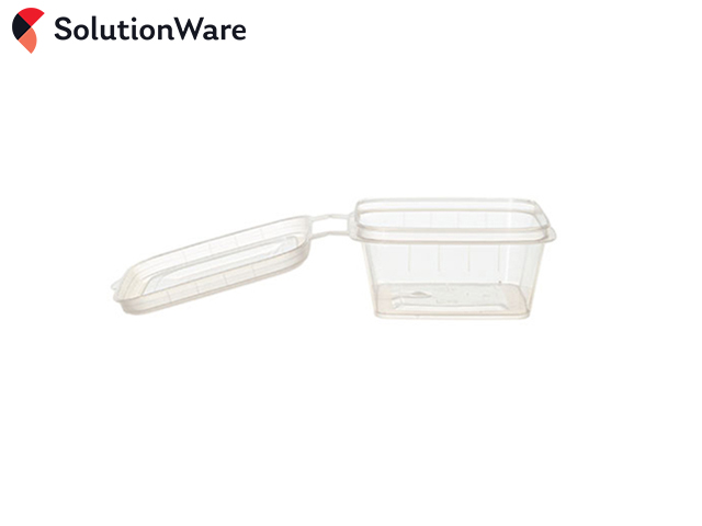 1.69oz Translucent PP Square Hinged Portion Pots (50ml). Made from sturdy polypropylene plastic. Translucent, semi clear in colour. A secure fitting lid is attached to the pot with a hinge. Lid includes an easy opening tab.
