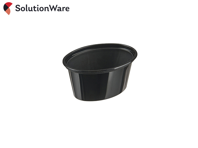2oz Black PP Oval Portion Pots (57ml). Made from sturdy polypropylene plastic.