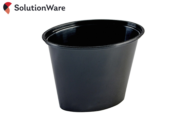 6oz Black PP Oval Portion Pots (170ml). Made from sturdy polypropylene plastic.