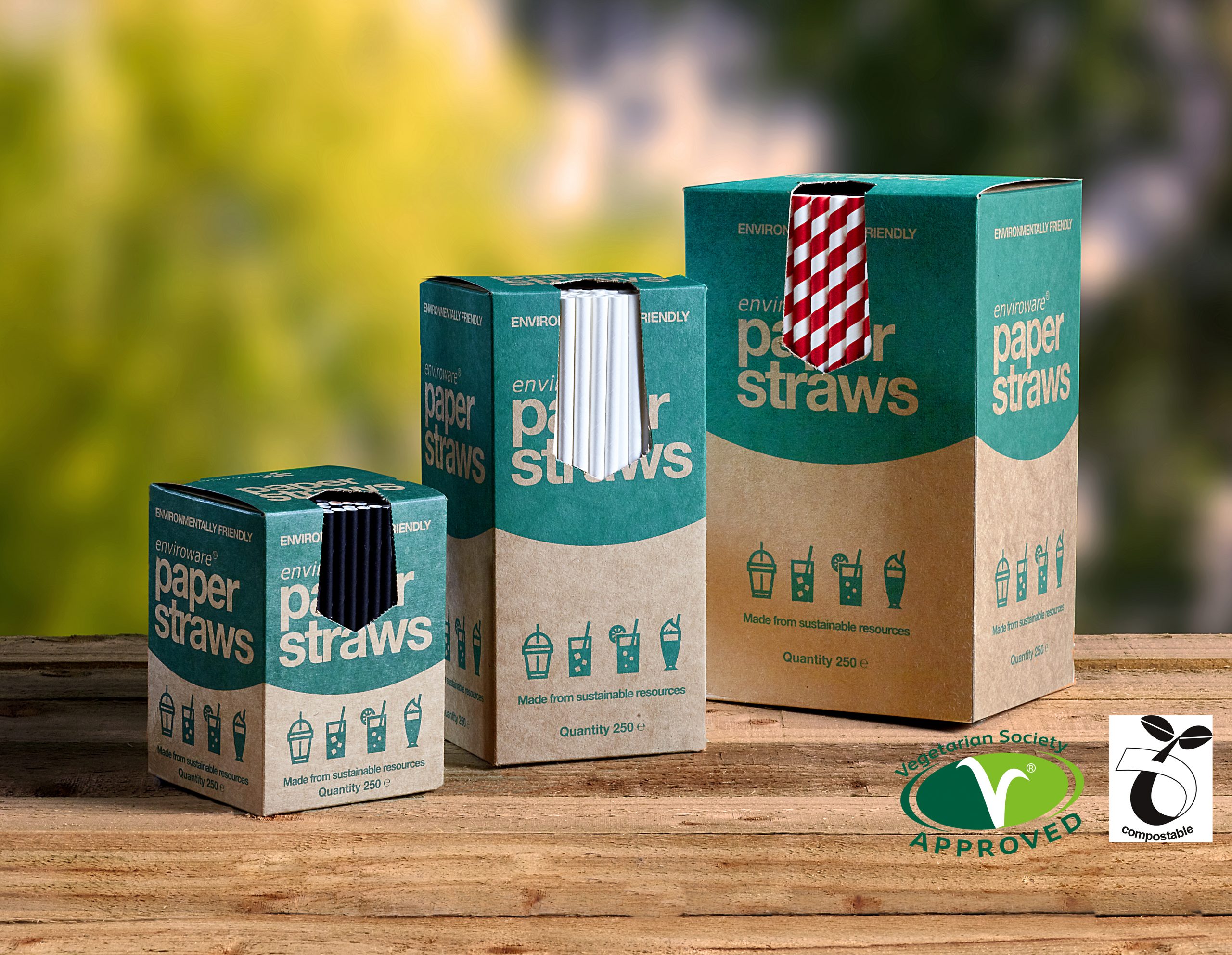 EnviroWare® Paper Drinking Straws are made from sustainable FSC®certified paper, and are free from any wax coating.  Our Paper Straws are commercially compostable, holding Din Certco Seedling certification (7P0818). Individually wrapped paper straws are also available. Choose from 5mm Ø Sip Straws, 6mm Ø Regular Straws or 8mm Ø Jumbo Straws.