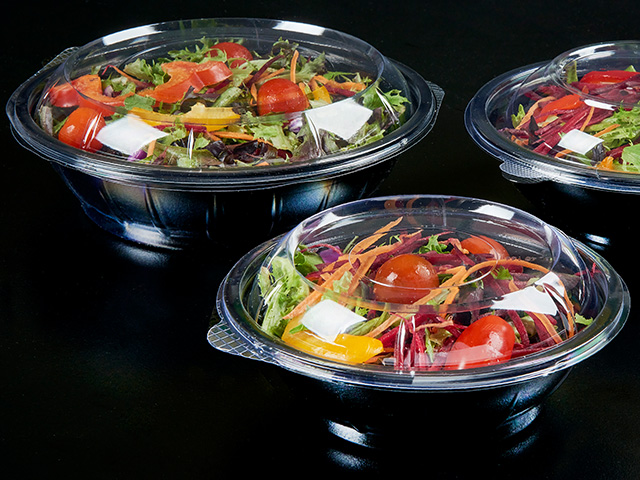 Our round plastic salad containers with separate lids are perfect for grab and go salads.