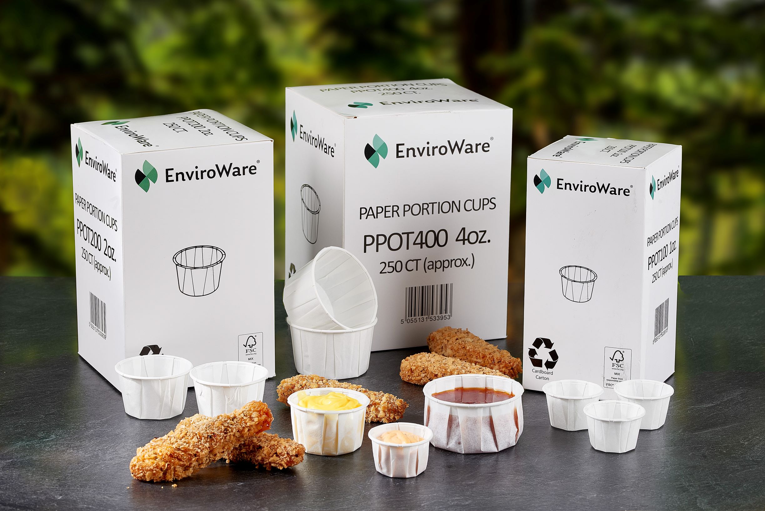 White Paper Portion Pots are available in 4 popular sizes, ideal for individual servings of sauces, dips and condiments. Favoured by restaurants that serve sauces on request, they help reduce table clutter by eliminating the need for bottles. The convex design of the paper pots, along with the rolled rim, ensures strength and stability.