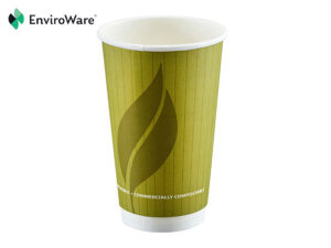 Double Wall Paper Hot Drink Cups in EnviroWares® Leaf 2 Stock Design. Featuring a double paper wall, providing superior heat insulation and hand comfort. Leaf 2 paper cups are certified commercially compostable, by Din Certco and feature the seedling logo.