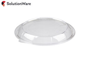 Round plastic salad bowls with separate lids, perfect for grab-and-go salads. Snap-fit lids provide a secure, leak-free seal, helping to keep food fresh and prevent spills during transport. Clear bowls and lids within this range are considered widely recyclable throughout the UK.