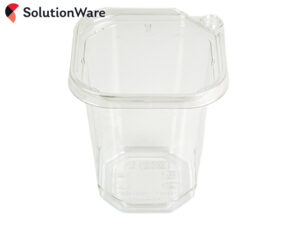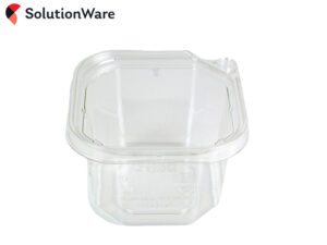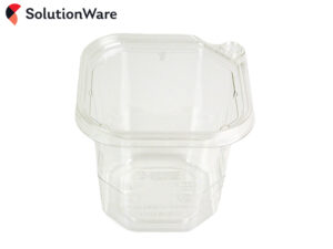rPET recycled plastic square deli containers with a patented safety lock lid (sold separately). Tamper-proof lids give added protection to prepared foods.